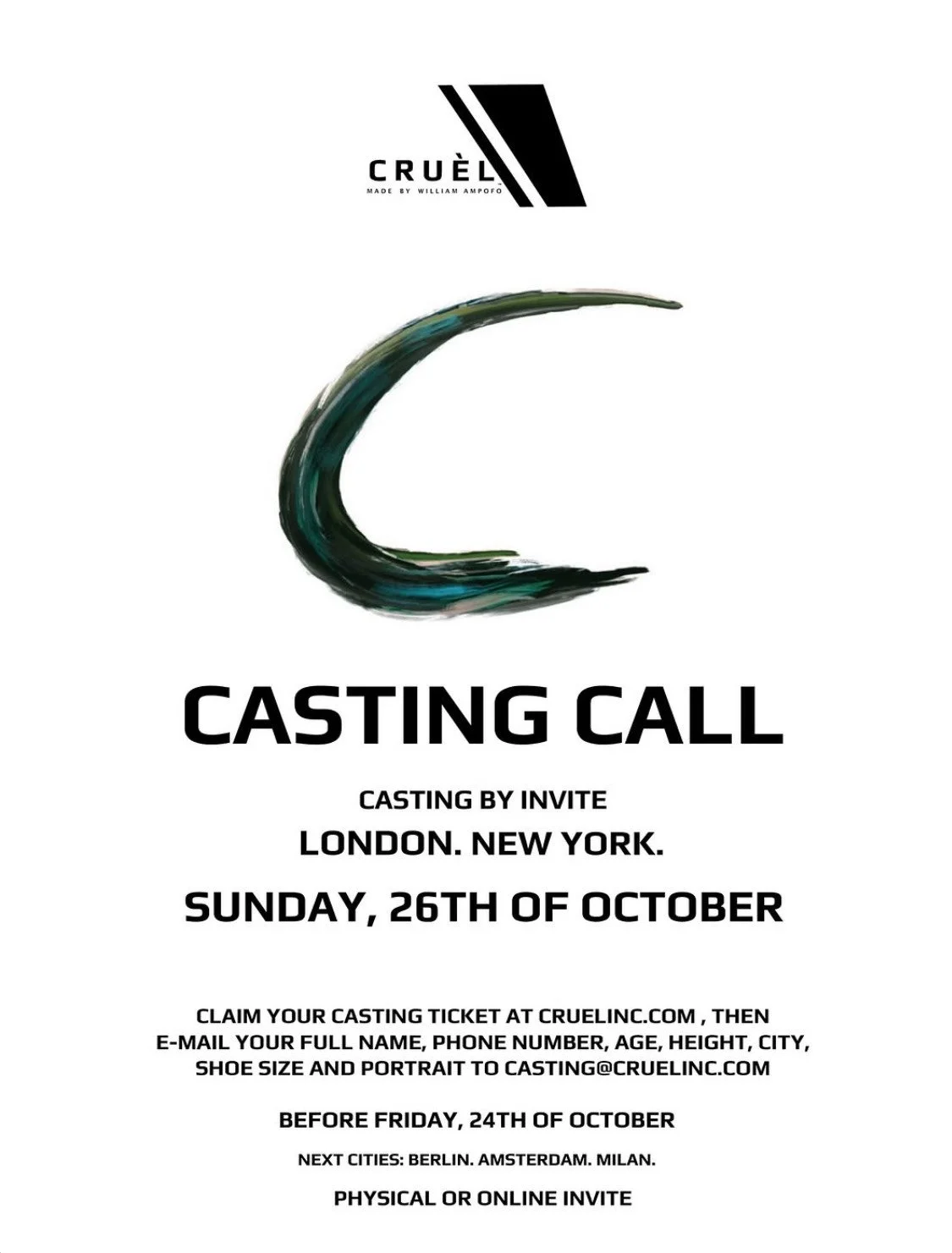 London & New York | CRUÈL FW26 Casting Call